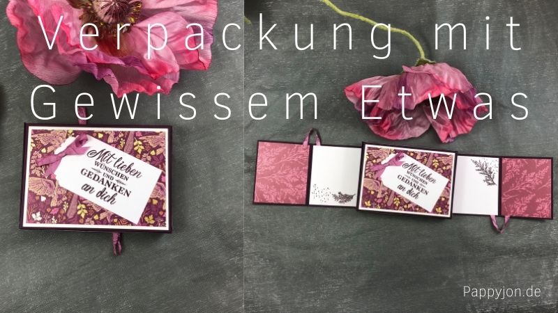 Die Verpackung mit Gewissem Etwas wurde mit dem wunderschönen DSP Herbstwunder von Stampin’ Up! hergestellt und hält noch eine Überraschung für Dich parat.?